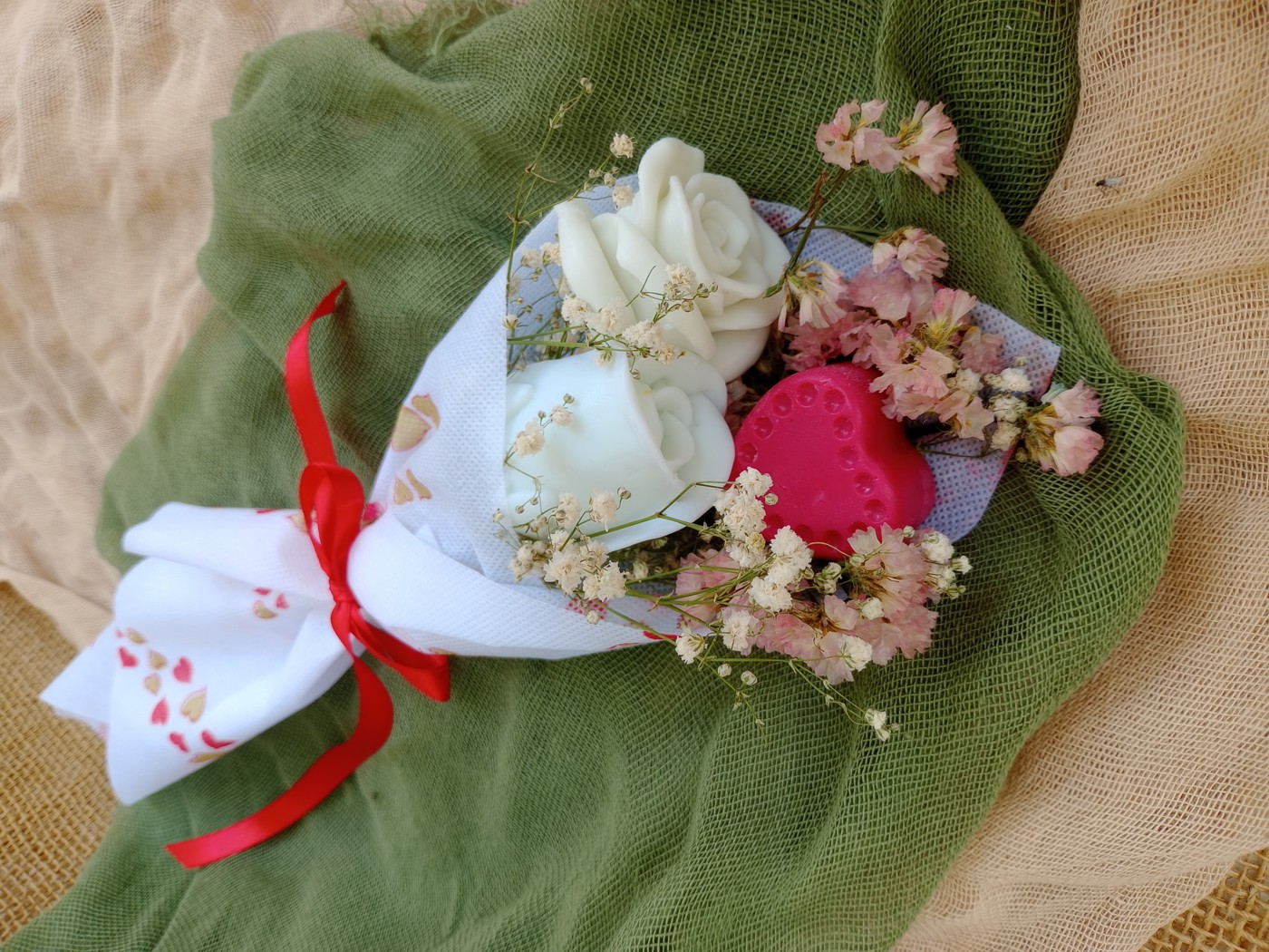 Ανθοδέσμη με τριαντάφυλλα και καρδιά σαπούνι