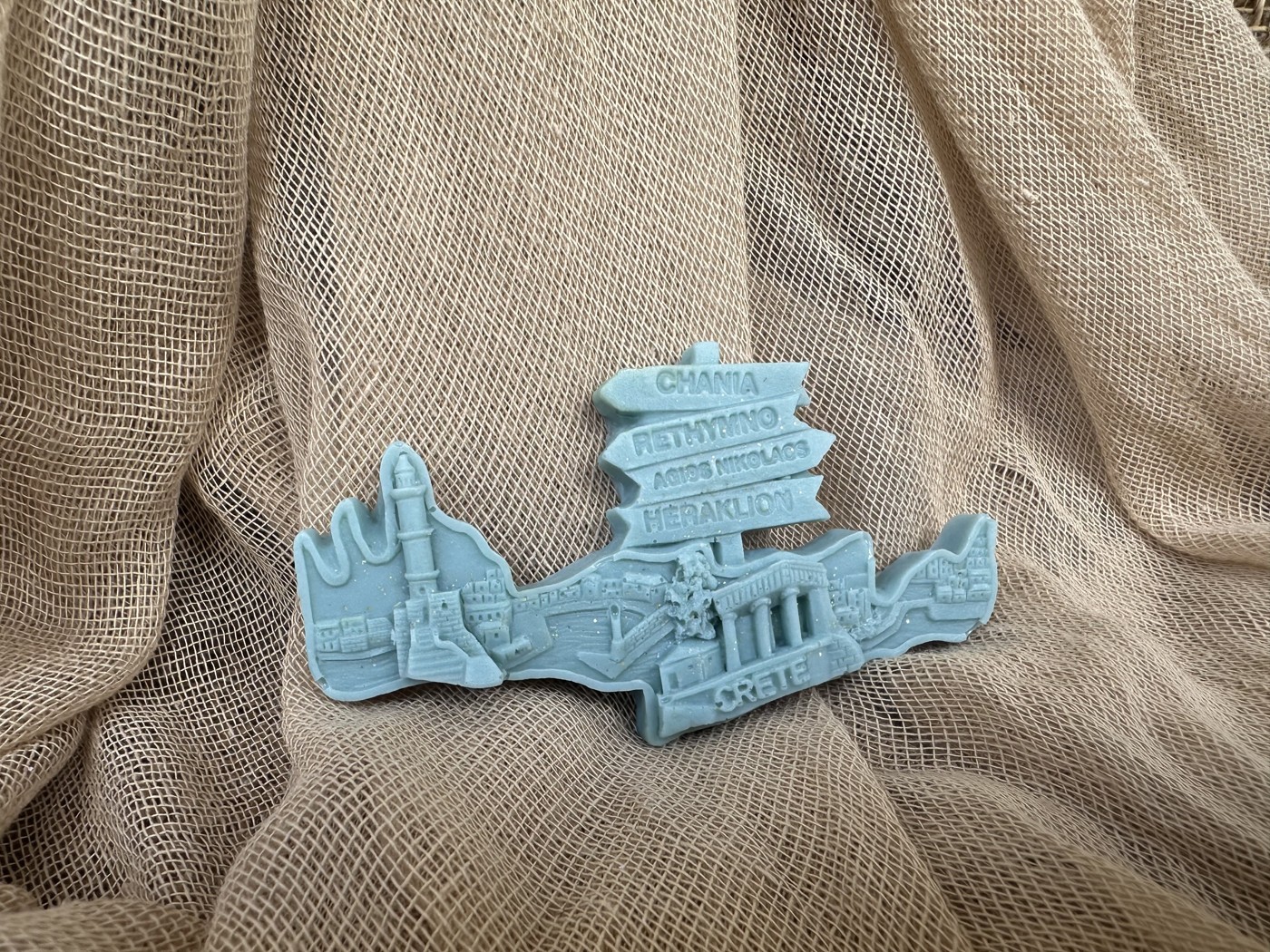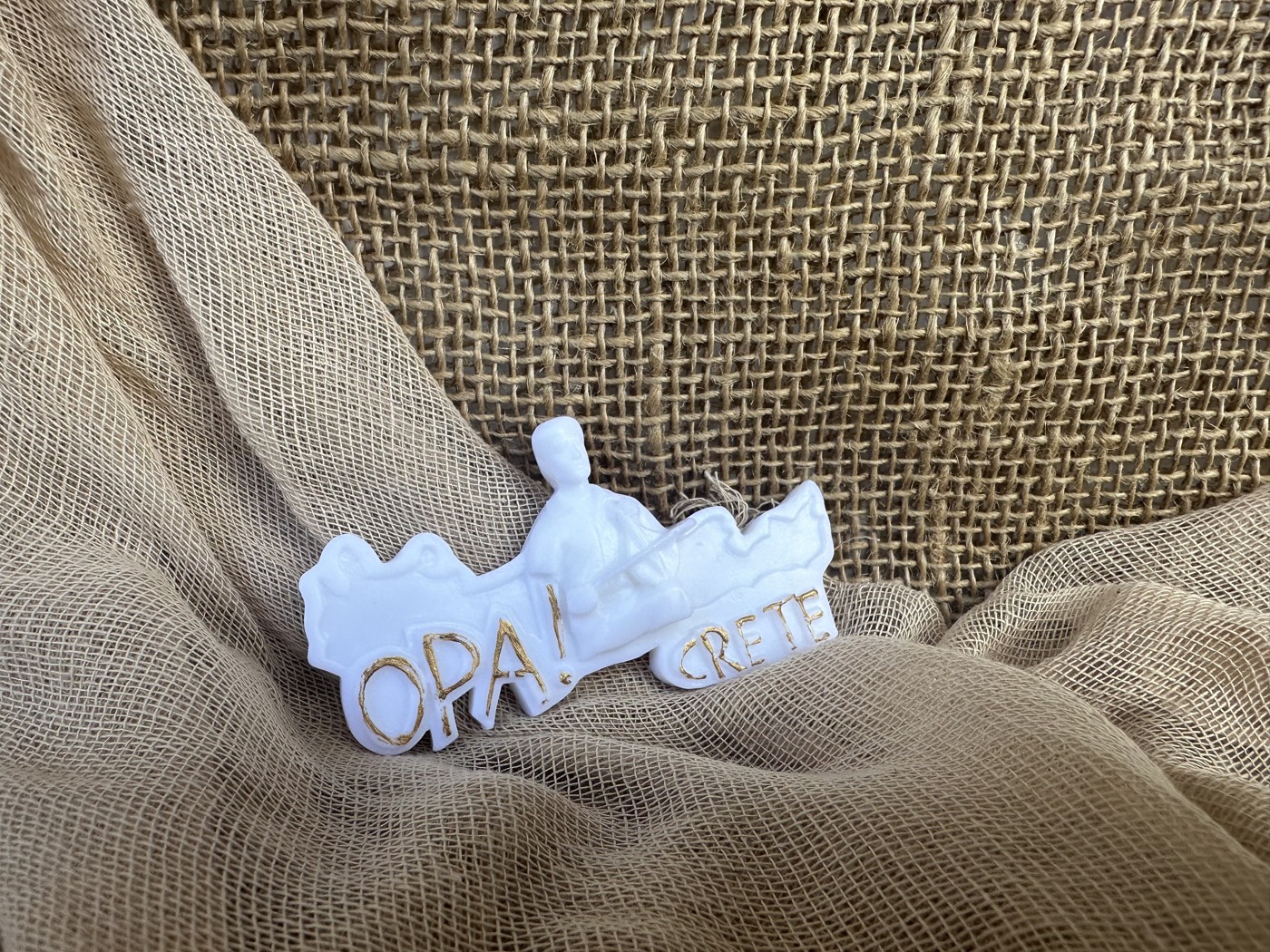 Τέλεια ιδέα και για μπομπονιέρα βάπτισης, για έναν Κρητικό παραδοσιακό γάμο. Χαρίστε στους καλεσμένους σας ένα σαπούνι, ένα αρωματικό κερί ή σε χειροποίητη πορσελάνη μαγνητάκι την Κρήτη.