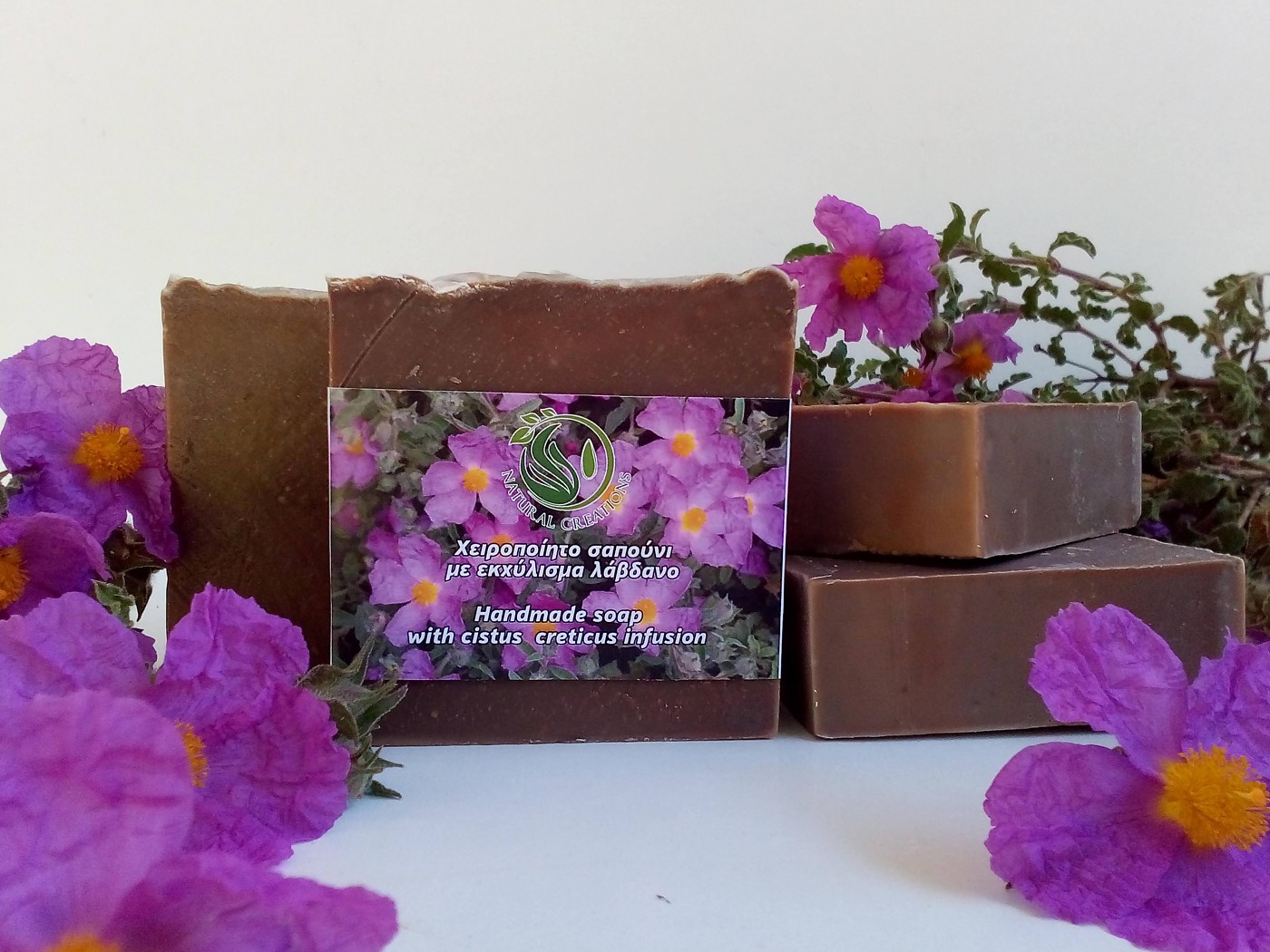 - Χειροποίητο σαπούνι λάδανο ή λάβδανο ή κίστος Κρήτης. Ένα σαπούνι ιδανικό για την ακμή, για δερματικά προβλήματα, αλλεργίες, τριχόπτωση, καταπραϋντικό, στυπτικό, συσφίγγει τους ανοιχτούς πόρους και καθαρίζει σε βάθος την επιδερμίδα, επουλώνει και αναπλάθει την επιδερμίδα.