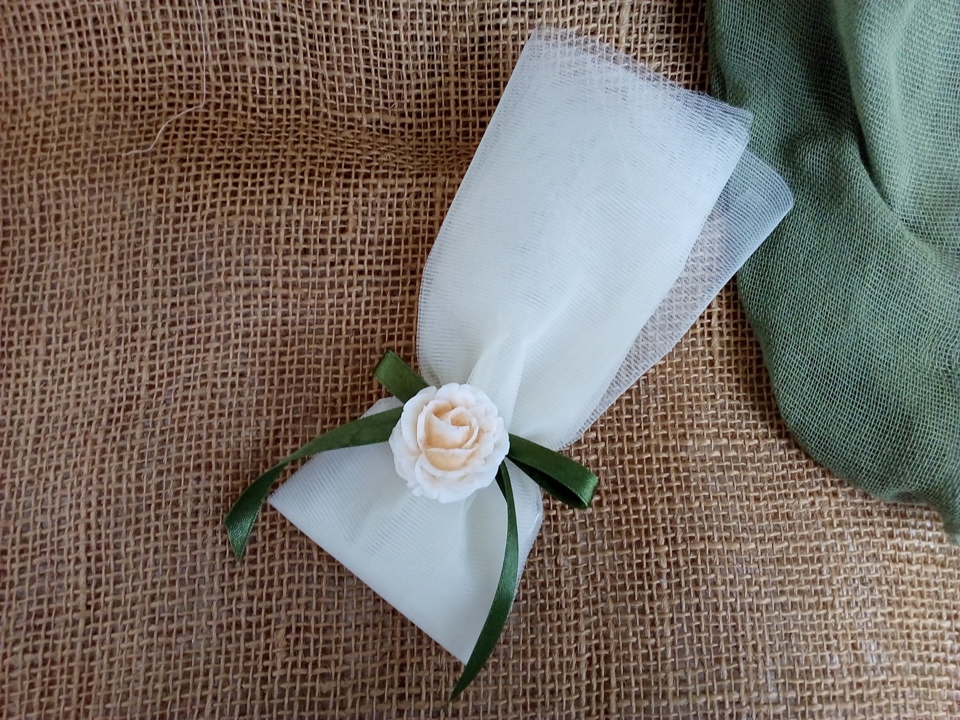 Χειροποίητο αρωματικό μίνι τριαντάφυλλο με υπέροχο άρωμα. Ιδανικό για μπομπονιέρα γάμου, για διακόσμηση του μπάνιου σας, σαν συνοδευτικό σε οποιαδήποτε κοινωνική σας εκδήλωση.