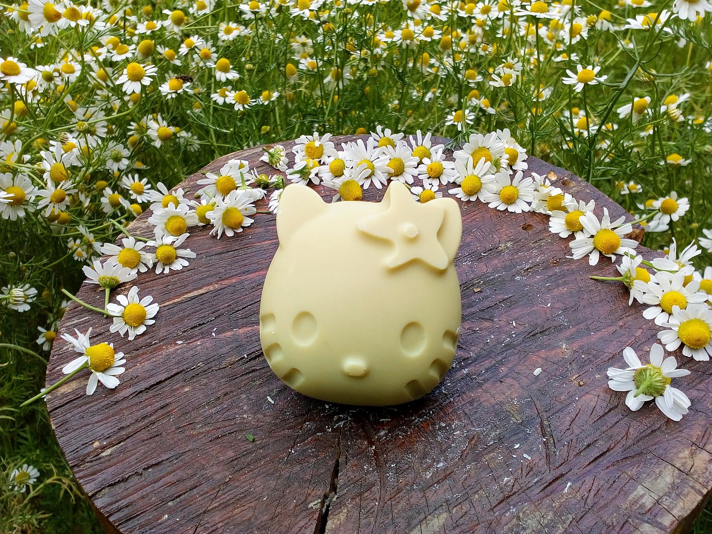 Ένα σαπούνι που χαρίζει όλες τις φυσικές ιδιότητες του χαμομηλιού. Καταπραϋντικό, αντισηπτικό, καθαρίζει, διατηρεί την επιδερμίδα απαλή και ενυδατωμένη, προστατεύει φυσικά την επιδερμίδα από ερεθισμούς , ένα σαπουνάκι ιδανικό για τα παιδικά , ευαίσθητα δέρματα, για τα μαλλιά , το πρόσωπο και το σώμα.