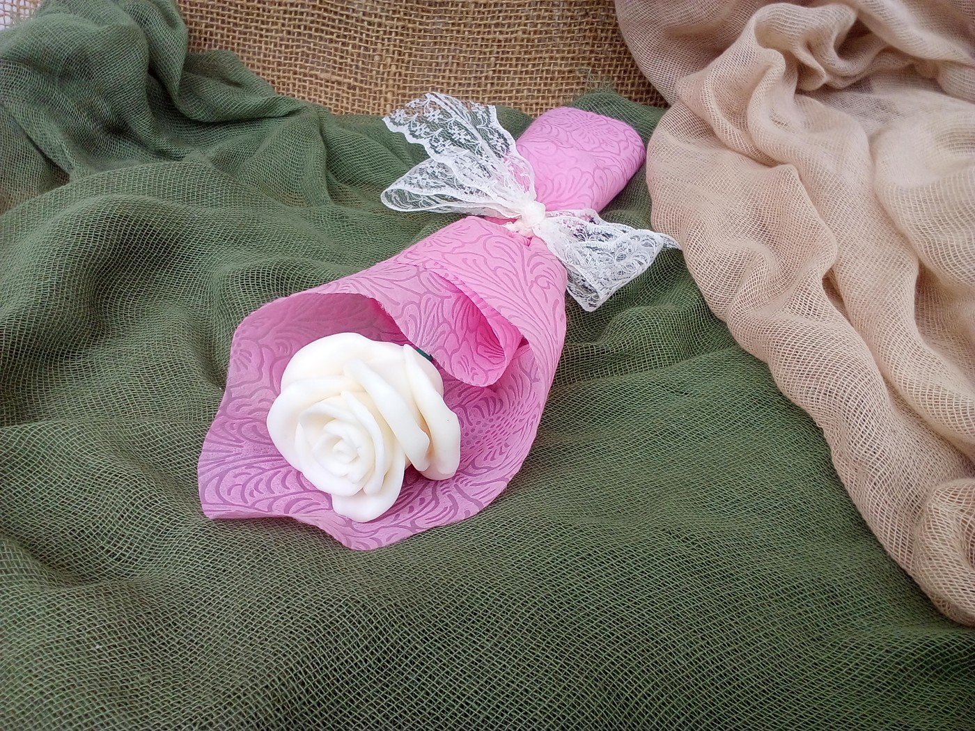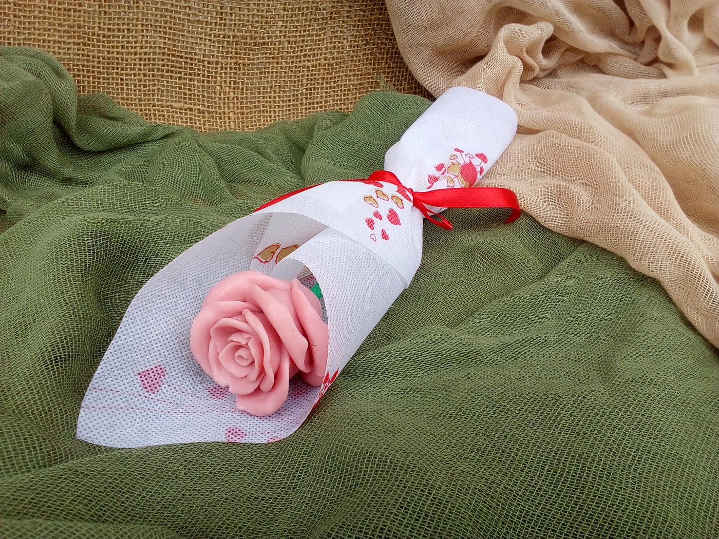 Αναβαθμίστε την ατμόσφαιρα του χώρου σας με το διακοσμητικό σαπούνι ανθοδέσμη τριαντάφυλλο. Απολαύστε την γοητεία των λουλουδιών στον χώρο σας προσθέτοντας ένα άγγιγμα κομψότητας, προσφέροντας μία εμπειρία αίσθησης και ομορφιάς με το αρωματικό σαπούνι τριαντάφυλλο. Ένα δώρο μοναδικό, ιδιαίτερο για κάθε περίσταση. Για γιορτή, γενέθλια, επέτειο, για κάθε κοινωνική σας εκδήλωση !